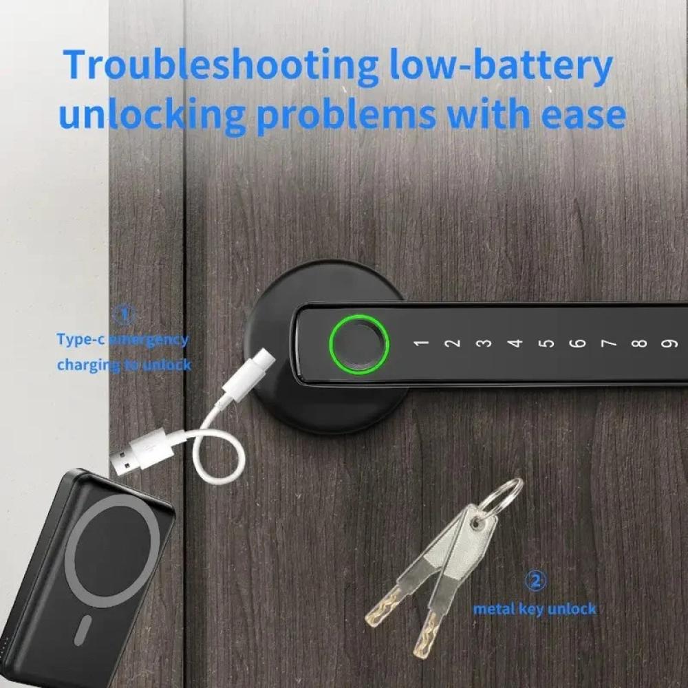 - تطبيق Tuya الذكي: تحكم كامل في قفلك من أي مكان! افتح الباب عن بُعد، وراقب سجلات الدخول، وقم بإدارة المستخدمين بكل سهولة من خلال هاتفك الذكي.